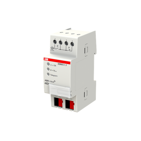 Das DSM/S ist ein Reiheneinbaugerät zum Einbau in Verteiler. Die Verbindung zum ABB i-bus® KNX wird über Busanschlussklemmen